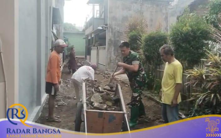 Terlihat jelas kekompakan Babinsa dengan warga setempat melaksanakan gotong-royong saling dalam pemasangan paving block untuk pengerasan permukaan jalan sehingga ketika musim penghujan tidak terjadi becek dan masyarakat dapat beraktivitas dengan nyaman.